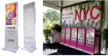 Provide your advertiser with high visibility media player and their customers with mobile devise charging power . The media player monitor is 15”W X 24”H. Units measure 70” high and 2’ wide, these ads will be seen. These media players and mobile chargers supports advertiser’s video, slide shows or static backlit ads. These units are sized to fit any lobby or hallway.