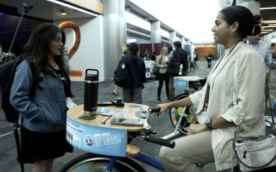 Pedal Power lounge is a place for attendees to relax and mingle. Watch as conference guest gather, exercise and commune.